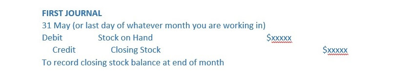 Instead, you will do a stock count once a month and calculate the value of Stock on Hand – you, of course, will need to have a record somewhere of the cost of all the items you purchased so that you can calculate the Stock on Hand value by multiplying the quantity of stock in your stock room by the cost price.
