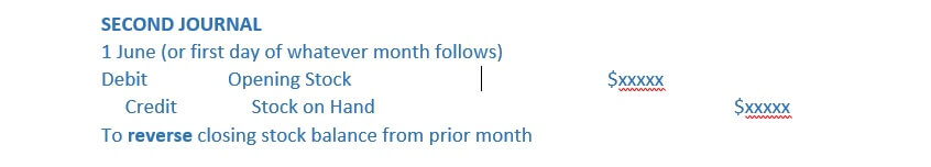 It is reversed because the closing stock balance is only a valid value of stock on hand at the end of May so we don’t want it to show this value through June. It will be re-updated at the end of June and then reversed 1 July using the same steps as explained in all the info above, and doing this every single month.