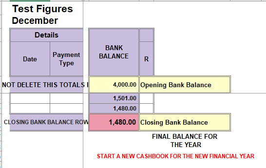 Financial Year Tips for Excel Cash Book: Balance Sheet Opening BalancesIf you want year-end tips you can read these tips.