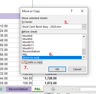 Financial Year Tips for Excel Cash Book: Copy P&LIf you are using the Balance Sheet, and have been keeping it in balance, then you must enter the balances from the end of last year into this year's Balance Sheet. (If you are not too worried about it and are leaving it to your Accountant, then don't bother with this step).